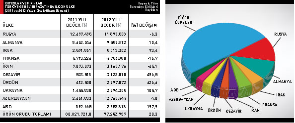 Ocak-Nisan ayı kapsamında 2011 yılında 10 milyon 810 bin dolar değerinde pompa ve kompresör gönderildi. 2012 yılında ise bu rakam 14 milyon 781 bin dolar oldu. İki yılın aynı dönemi kıyaslandığında yüzde 36,7 oranında artışın yaşandığı görülüyor. Listenin dördüncü sırasında olan Rusya’ya 2012 yılının Ocak-Nisan döneminde 12 milyon 158 bin dolar değerinde pompa ve kompresör ihraç edilirken İtalya’ya 2012 yılının aynı döneminde 9 milyon 890 bin dolar değerine ürün gönderildi.