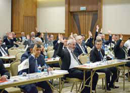 İSKİD üyelerinin yoğun katılımı ile gerçekleştirilen toplantıda, 11. Dönem Yönetim Kurulu Başkanı Naci Şahin’in konuşmasının ardından divan başkanı ve üye seçimine geçildi. 2013-2014 dönemi yönetim kurulu ve birlikte çalıştığı 11 komisyon, dönem içindeki faaliyetlerini aktardıktan sonra derneğin denetim kurulu raporu okundu ve 2014 bilançosu ile 2015 tahmini bütçesi incelenerek onaylandı. Geçmiş dönem çalışmalarının oybirliği ile ibrasının ardından, Eurovent Derneği sunumu ve İSEDKO sunumları yapıldı. Makina İmalat Sanayi Dernekleri Federasyonunun (MAKFED) temsilcilerinin de tekrar belirlendiği toplantıda, İSKİD’in 12. Dönem Yönetim Kurulu Başkanlığına Cem Savcı seçildi. Genel kurul ardından düzenlenen yönetim kurulu toplantısında derneğin yönetim, denetim ve onur kurulu üyeleri de belirlendi.