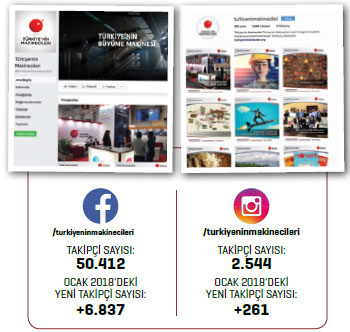 sosyal medyada da aktif tanıtım çalışmaları sürdürüyor. Sosyal medyanın önde gelen mecralarındaki paylaşımlarıyla Türk makine imalat sektörlerinin kamuoyundaki bilinirliğini artıran Türkiye’nin Makinecileri, Ocak ayındaki yayınlarıyla takipçi sayısını artırmayı sürdürdü.