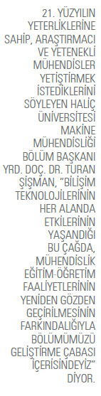 Makine mühendisliği eğitimi almak isteyen bir öğrencinin Haliç Üniversitesi’ni seçmesindeki temel nedenleri sıralayabilir misiniz? Kurulduğu günden bu yana birçok alanda başarıya imza atan, değişimi ve yenilikçiliği önemle vurgulayan Haliç Üniversitesi, “Hayata Hazırlayan Üniversite” sloganıyla sürekli girişimci gençler yetiştirmeye yönelik atılımlar atıyor. Bu kapsamda genç ve dinamik bir bölüm olarak biz de ülkemiz sanayisinin gelişmesinde önemli bir role sahip 21. yüzyılın yeterliliklerine sahip araştırmacı ve yetenekli mühendisler yetiştirmek istiyoruz. Üniversite ve fakültemizin vizyoner yönetim anlayışıyla bu kurguyu gerçekleştireceğimize olan inancımız tamdır.