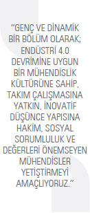 Mühendislik kültürünün oluşturulması ve ihtiyaç duyulan alanlara teknik insanlar yetiştirilmesi en önemli arzumuz. Bu anlamda mezun öğrencilerimizin mühendis olarak hem ülkemizde hem de başka ülkelerde başarılı bir şekilde çalışabilmeleri için sanayinin ihtiyaçlarını dikkate alıyoruz. Staj planlarımızı sanayiyle iletişim içerisinde planlıyoruz. Bu sayede