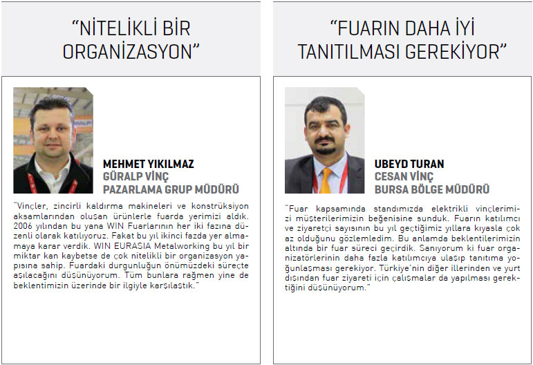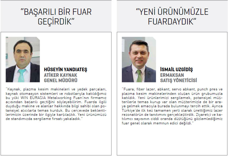 Bu yıl 22’nci kez kapılarını açan WIN EURASIA Metalworking; Metalworking Eurasia, Surface Treatment Eurasia ve Welding Eurasia fuarlarını tek çatı altında buluşturdu. Dokuz ülkeden 368 katılımcının 11 bin metrekarelik alanda yeniliklerini sergilediği fuarın açılışına Deutsche Messe AG Kıdemli Başkan Yardımcısı Wolfgang Lenarz, Alman Mühendislik Federasyonu VDMA Türkiye Ülke Müdürü Friedrich Wagner, Makine İhracatçıları Birliği (MAİB) ve Türkiye’nin Makinecileri Yönetim Kurulu Üyesi Sevda Kayhan Yılmaz, İş Sağlığı ve Güvenliği Profesyonelleri Derneği Yönetim Kurulu Başkanı Levent Kavlak ile Endüstriyel Otomasyon Sanayicileri Derneği (ENOSAD) Yönetim Kurulu Başkanı Hüseyin Halıcı gibi isimler katıldı. Fuarın açılışında konuşan Deutsche Messe AG Kıdemli Başkan Yardımcısı Wolfgang Lenarz; “Türk katılımcılar bu uluslararası platformda kendi ürünlerini uluslararası bir camiaya sunabilme fırsatı yakalayacak. Bilim, Sanayi ve Teknoloji ile Ekonomi Bakanlığı başta olmak üzere fuarımızı destekleyen tüm kurum ve kuruluşlara teşekkür ediyoruz” dedi. Lenarz, sözlerini şöyle tamamladı: “İmalat sanayisinin iki önemli etkinliği ‘WIN EURASIA Metalworking’ ve ‘WIN EURASIA Automation’ fuarlarını sektörün bu konudaki talebini dikkate alarak yeniden birlikte organize etme kararı aldık. WIN EURASIA 2018; WIN Eurasia Metalworking ve WIN Eurasia Automation kapsamında düzenlenen yedi fuarı tek bir çatı altında sunarak ziyaretçilerine daha fazla kazanç ve verim sağlayacak.”