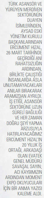 Ercüment Hızal, herkese bir şekilde “dokunmayı” başarabilen, yardımcı, yol gösteren biriydi. Birlikte çalıştığı insanlarda asla unutamayacakları anılar bırakarak aramızdan ayrıldı. Onu tanıyan herkesin kalbinde yaşadığına ve yaşayacağına olan inancımız tamdır. Hızal’ın kaybı, hiç kuşkusuz dünyamız, ülkemiz ve insanlık için çok önemli bir kayıptır.