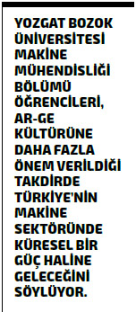 YOZGAT BOZOK ÜNİVERSİTESİ MAKİNE MÜHENDİSLİĞİ BÖLÜMÜ ÖĞRENCİLERİ ALDIKLARI NİTELİKLİ EĞİTİMİN BEKLENTİLERİNİ FAZLASIYLA KARŞILADIĞINI BELİRTİYOR.