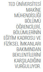 Okullarının uzun yıllara dayanan eğitim tecrübesine güvendiklerini belirten TED Üniversitesi Makine Mühendisliği öğrencileri, aldıkları teorik eğitimi çeşitli projelerle günlük hayatta kullanabildiklerini söylüyor.