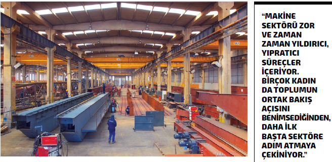 Zor bir sektörden bahsediyoruz ve zaman zaman yıldırıcı ve yıpratıcı süreçler yaşayabiliyorsunuz. Birçok kadın toplumun ortak bakış açısını benimsediğinden daha ilk başta adım atmaya bile çekiniyor. Denemeden potansiyeliniz hakkında bir fikre sahip olamaz ve gücünüzün farkına varamazsınız. Ben, birçok kadının sadece makine sektöründe değil inşaat, endüstri gibi zor sektörlerin içinde de çok başarılı olabileceğine ve istedikten sonra her şeyin başarılabileceğine inanmıyorum. Her iş, çokça özveri ve sabır gerektirir.