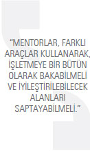 Sürecin ilk haftalarında işletmeden alacağı tüm bilgileri değerlendirecek ve iyileştirilebilecek alanlara ilişkin yapılması gerekenleri ve bunların öncelik sırasını da belirleyecektir. Sonuçta, bu işlerin her birini bir projenin iş paketleri gibi düşünerek ayrıntılandıracak gerekli olan insan kaynağı, hizmet alımı, altyapı, süre, maliyet ile başarı ölçütünün ne olacağını belirlemiş olmalıdır. Bu hususları mentor öncelikle Ara-Yüz ile paylaşır, gerekli görülen değişiklikler varsa yapar. Daha sonra bu raporu işletme yönetimine sunar ve yönetimle birlikte uyum sağlanan şekliyle eylem planı hazırlanır. Eylem planı işletme yöneticisi ve mentor tarafından ortak karar olarak bildirilir. Eylem planı uygulanabilecek duruma getirildiği anda işletme adına yaratılmış olan talep dizisinin nasıl karşılanacağı konusunda da Ara- Yüz devrede olacaktır. İşletme bu talepleri için kimlerden hizmet alacak, ihtiyaçları nasıl karşılanacak, devlet desteklerinden nasıl yararlanacak sorularının cevabı Ara-Yüz’dedir. Hizmet vereceklerin belirlenmesi sürecinde Mentor devrede olmayacaktır, ancak, hizmet başladıktan sonra hizmetin uygunluğunu ve niteliğini gözlemek için devreye girecektir. Bir benzetme yapılacak olursa; Mentorun yaptığı iş hastalığın teşhisi, daha sonra ise tedavi protokolünü hazırlanmasıdır. Tedavi sürecinde, mentorluk hizmeti dışında başka bir iş yapmamalıdır! Bir mentor, mentorluk yaptığı işletmeye, aynı zamanda eğitmen, danışman veya koç olarak hizmet veren kişi olmamalıdır. Eylem planı müddetince devam edecek bu ortak çalışma sürecinde, mentor firmanın rehberi veya yol arkadaşı olmalı ve başta yönetici olmak üzere tüm işletmedeki değişim heyecanlarını canlı tutabilmelidir.