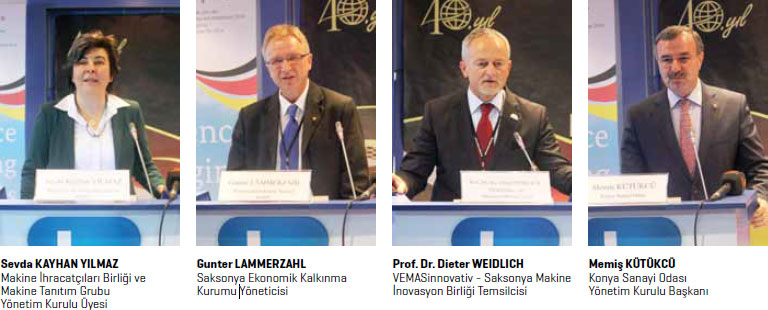Saksonya Ekonomi Kalkınma Şirketi Türkiye Genel Müdürü Gunter Lammerzahl da yaptığı konuşmada, Türkiye’ye dört kez geldiğini ve Türk firmalarının gücünü bildiğini belirterek, ”Firmalara hem eğitim gezilerinde, hem fuarlarda destek veriyoruz. Sanayi ve ticaret odaları ile işbirliği halinde çalışıyoruz. Bu gibi etkinliklerle işbirliğinin artacağını düşünüyorum” dedi. Lammerzahl, Saksonya eyaletinde makine imalatının 200 yıldır sürdüğünü belirterek eyalette faaliyet gösteren firmalar hakkında bilgi verdi. KTO Yönetim Kurulu Başkanı Selçuk Öztürk ise Konya’nın gelişiminden bahsederek, Konya sanayisinin Almanya ile daha yoğun işbirliği yapacak potansiyele sahip olduğunun altını çizdi. Prof. Dr. Dieter Weidlich de yaptığı sunumda başta otomotiv ve makine mühendisliği olmak üzere araştırma, eğitim ve inovasyon konularında MTG ile VEMAS arasındaki işbirliği çerçevesinde değerlendirmelerde bulundu.