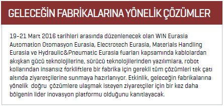 11-14 Şubat 2016 tarihleri arasında düzenlenecek olan WIN Eurasia Metalworking’e ilişkin beklentilerini Moment Expo dergisine anlatan Hannover Messe Genel Müdürü Alexander Kühnel, Metalworking Eurasia kapsamında ziyaretçilerin sac levha işleme teknoloji zincirinin tamamına ulaşabileceklerini söyledi. Son teknolojilerin ön plana çıkacağını kaydeden Kühnel, etkinlikte katılımcıların demir-çelik, alüminyum, metal, otomotiv gibi çeşitli sektörlerin üretim süreçlerini daha etkin hale getirmeye yönelik ürün ve hizmetleri sergileyeceklerini kaydetti. Fuarın sergilenen ürünlerin yanı sıra özel bölüm ve etkinlikleri ile sektöre de yön vereceğini vurgulayan Kühnel, şöyle devam etti: “İlk kez geçtiğimiz yıl düzenlenen Robotics ve Safe@Work özel bölümlerinin yanı sıra bu yıl iki yeni etkinliğe daha imza atan WIN EURASIA Metalworking, ‘Automative Supply Chain’ adı altında gerçekleşecek özel alanda sac işleme ve yüzey işlem sektörünü otomotiv sektörüyle buluştururken, ‘Metal İşleme Endüstrisinde Yüzey İşlem Teknolojileri’ konulu forum aracılığıyla da yüzey işlem teknolojisindeki yeniliklere odaklanacak. Robotik teknolojilerin üretim süreçlerindeki artan önemine dikkat çekmek amacıyla ilk kez geçtiğimiz yıl düzenlenen ve yoğun ilgi gören Robotics ise bu yıl Endüstriyel Otomasyon Sanayicileri Derneği (ENOSAD) işbirliğiyle ziyaretçilerle buluşturacak.”