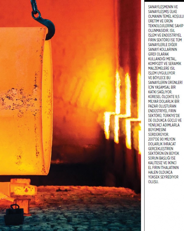 Sanayileşmenin ve sanayileşmiş ülke olmanın temel koşulu üretim ve ürün teknolojilerine sahip olunmasıdır. Buna bağlı olarak başta makine sektörü olmak üzere otomotiv, havacılık ve uzay, savunma, beyaz eşya, enerji ve sağlık ekipmanları, raylı sistemler, gemi sanayisi, elektrikli teçhizat ve elektronik gibi orta yüksek ve yüksek teknolojili sanayi alanlarında üretim yapılırken, bu sektörlerde teknolojik ilerlemeler gerçekleştirilmeye devam ediliyor. Isıl işlem ve endüstriyel fırın sektörü de tüm sanayiler ile diğer sanayi kollarının girdi olarak kullandığı metal, kompozit malzeme ve seramik malzemelere ısıl işlem uyguluyor ve böylece bu sanayilerin ürünleri için yaşamsal bir katkı sağlıyor. Endüstriyel fırın sektörü küresel ölçekte 2017’de 9,5 milyar dolarlık bir pazar oluştururken, bu pazarın 2025 yılı sonunda 11 milyar dolara ulaşabileceği öngörülerinde bulunuluyor. Sektördeki satışlarının yaklaşık yüzde 12’sini vakumlu fırınlar oluştururken, yüzde 88’inin ise atmosferik ekipmanlardan oluştuğu düşünülüyor.