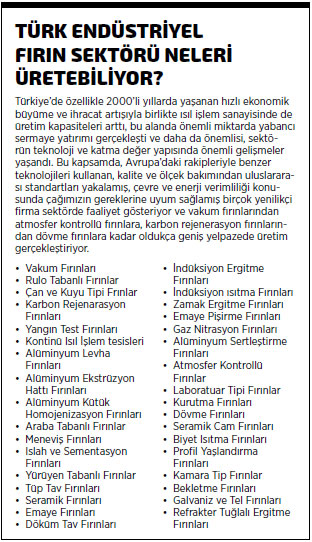 Tüm bu bileşenler dikkate alındığında, gelişmiş bir ısıl işlem sanayisi ile endüstriyel fırın sektörünün aynı zamanda önemli bir döviz kazandırıcı sanayi olduğu da söylenebilir.