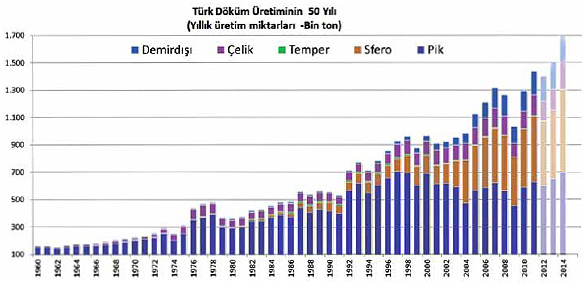 Türk döküm sektörü 2011 yılında toplam 2,58 milyar euro değerinde, 1 milyon 433 bin tonluk üretim yaptı.