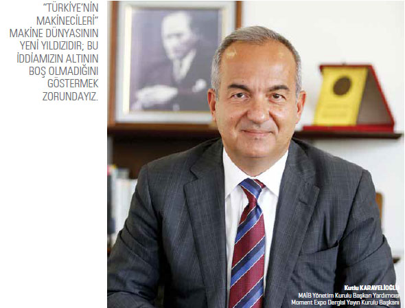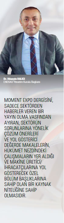 Biliyoruz ki makine imalatı stratejik bir sektör. İhracat kilo değerini artırmadığımız zaman orta gelir tuzağından kurtulamayacağımız artık aşikâr. İleri teknoloji ve katma değerli ürünler yapabilirsek kişi başına düşen milli gelirimizi istenilen yerlere daha rahat getirebiliriz. Makine imalatında katma değeri yüksek ürünler yaparsak, hem ithalatın önüne geçebilir hem de ihracatı artırarak ülkemizin geleceğinde önemeli bir rol üstlenebiliriz. Ağaç yaşken eğilir misali, yeni nesillere üretimi sevdirilmeliyiz. Kendi makinemize olan güveni yükseltmeliyiz. Bunun için de elbette sektörümüzün nitelikli tanıtımına ihtiyacımız var. Buradan, özellikle Makine İhracatçıları Birliği ve Türkiye’nin Makinecileri’ndeki arkadaşlarıma, tüm ihtisas dernek yöneticilerine yaptıkları faaliyetler için teşekkürlerimi iletmeliyim. Daha önce de söyledim, hep söylüyorum: Makinecilik uzmanlıktır; herkese hitap eden yayınların bize hiçbir ekonomik faydası olamaz. Bu anlamda gerek iç, gerek dış piyasada sektörel yayıncılığın son derece önemli olduğuna inanıyor ve Moment Expo’nun, bu çerçevede önemli bir görev üstlendiğini düşünüyorum. Kendi adıma, yeni sayılarını ilgiyle takip ediyor, meslektaşlarım ve sektörümüz hakkında güncel bilgilere sahip oluyorum. Kişisel olarak, elbette Moment Expo’nun içeriklerinin zenginleştirilmesini isterim. Örneğin sektördeki birçok iş insanı yeni siparişler konusunda endişe duyuyor. Dolayısıyla Türk makinesi için yeni pazarlar, bu pazarların standartları hakkında yayımlanacak bilgilerin faydalı olacağına inanıyorum.