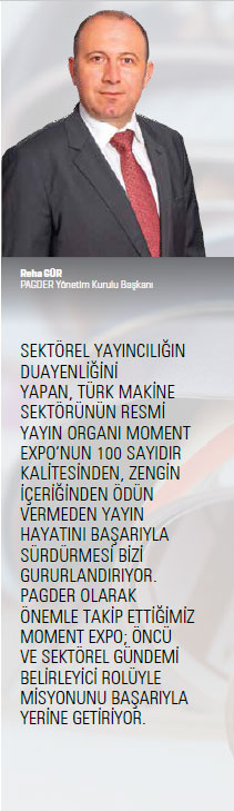Bu bağlamda, makine sektörünün resmi yayın organı olan Moment Expo’yu da çok önemsiyoruz. Sektörel yayıncılığın önemi büyük. Dolayısıyla 100’üncü sayıya ulaşmak apayrı bir başarıdır. Makine sektöründe önemli ufuklar açan ve makine sektöründeki birimlerin birbirlerini tanımaları açısından da Moment Expo’nun müthiş bir misyon üstlendiğini görüyorum. Bu misyon bugüne kadar başarıyla getirildi ve Moment Expo, bizim tabirimizle, makine sektörü için vazgeçilmez bir sektörel yayın ikonu oldu.