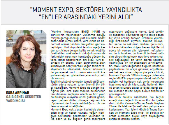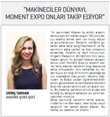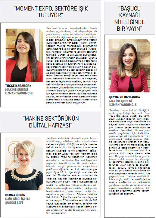 Bu ay 100’üncü sayısı ile okurlarının karşısına çıkan Moment Exponun yayına hazırlanmasında emeği geçen isimlerden bazıları ise OAİB ve Makine Şubesinin genç ve dinamık ekibi.