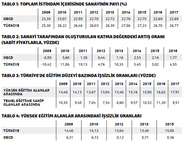 Dünya Bankası tarafından tutulan Dünya Kalkınma Göstergeleri, bize, oldukça geniş bir yelpazede analiz yapabileceğimiz veriler sunuyor. Aynı zamanda bu göstergelerle farklı perspektifler bazında inceleme yapılması ve Türkiye’nin konumunun diğer ülkelerle karşılaştırmalı incelenmesi de mümkün oluyor. Bu perspektiflerden ilki, sanayinin istihdamdaki göreli konumudur.