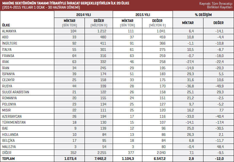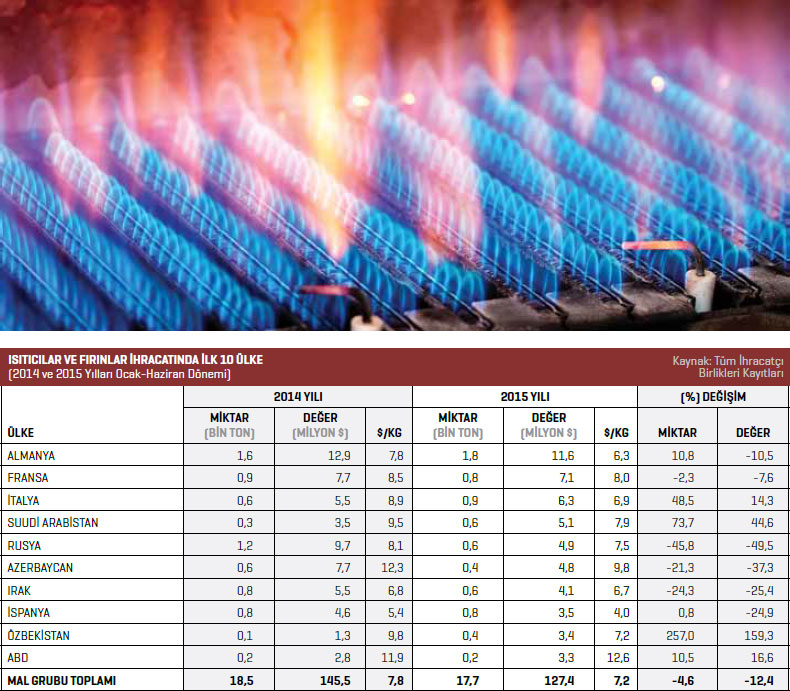 2015 yılının Ocak-Haziran döneminde ısıtıcılar ve fırınlar mal grubunda en fazla ihracat artışı yüzde 159,3 ile Özbekistan’da yaşandı. Özbekistan’ın ardından yüzde 44,6 ile Suudi Arabistan gelirken yüzde 16,6 ile ABD üçüncü sırada yer aldı.