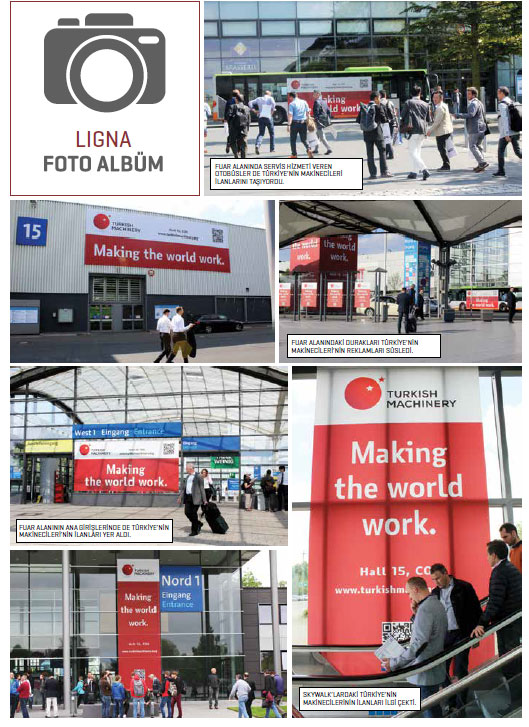 Türkiye’nin Makinecileri, Almanya’nın Hannover kentinde iki yılda bir düzenlenen ormancılık ve ağaç işleme makineleri fuarı Ligna’ya katılarak ziyaretçileri Türk makine sektörü hakkında bilgilendirdi. 1.500 firmanın ürünlerini sergilediği fuarı dört gün boyunca 93 bin kişi ziyaret etti. Ağaç işleme makineleri sektöründeki yenilikçi fabrika, makine, araç ve çözümlerin sergilendiği fuara bu yıl Türkiye’den 35 firma katıldı.