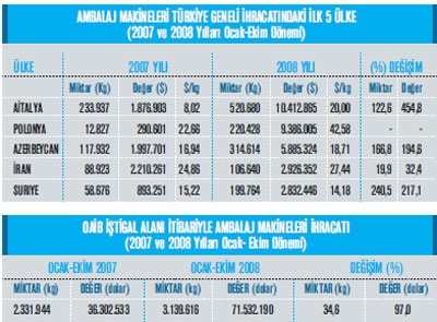 Türkiye ambalaj makineleri ihracatı Ocak-Ekim döneminde de yükselişini sürdürüyor. Geçtiğimiz yılın ilk 10 aylık dönemine göre ambalaj makineleri ihracatımız 2008 yılının aynı zaman dilimine göre yüzde 97 oranında artış göstermiş. 2007 yılının Ocak-Ekim döneminde 36 milyon 302 bin dolar olan ambalaj makineleri ihracatı mız 2008 yılının Ocak-Ekim dönemine gelindiğinde ise 71 milyon 532 bin dolar olmuş. Ambalaj makineleri ihracatımız ülkeler bazında incelendiğinde ise İtalya’nın bu mal grubu için en fazla ihracat gerçekleştirdi- ğimiz ülke olduğu görülüyor. İtalya’ya 2007 yılının Ocak- Ekim döneminde 1 milyon 876 bin dolarlık ihracat söz konusu iken 2008 yılının Ocak-Ekim dönemine gelindiğinde ise bu değer yüzde 454,8 oranında değer artışı göstererek 10 milyon 412 bin dolar olmuş. İtalya’nı n ardındansa en fazla ambalaj makineleri ihracatı yaptı- ğımız ülke ise Polonya olmuş. Polonya’ya 2007 yılının ilk 10 aylık döneminde sadece 290 bin dolarlık ihracat yapılmışken 2008 yılının eş zaman dilimine gelindiğinde ise bu mal grubunda Polonya’ya olan ihracatı mız 9 milyon 386 bin dolar düzeyine yükselmiş. Ambalaj makineleri ihracatımızın üçüncü en büyük pazarı ise Azerbaycan olmuş. Azerbaycan’a 2007 yılının Ocak-Ekim döneminde 1 milyon 997 bin dolar ambalaj makineleri ihracatı gerçekleştirilmişken 2008 yılının eş zaman dilimine gelindiğ inde ise yüzde 194,6 oranı nda yükselişle 5 milyon 885 ambalaj makineleri ihracatı gerçekleştirilmiş.     Cansel Danışman Komat Ticaret İhracat Müdürü  Krizden dolaylı olarak etkileniyoruz. Biz daha çok proje bazlı çalışıyoruz ve makine sattığımız yerlere ambalajına kadar her şeyi satıyoruz. Müşterinin ambalajının markasından dizaynına kadar A’dan Z’ye her şeyiyle ilgileniyoruz. Dolayısıyla etraftakileri çok da takip edemiyorum ama bize makine sektöründe bir hayli talep geliyor şu anda. Çünkü daha önce yaptığımız makineler örnek teşkil ediyor ve onları görüp memnun kalanlar bize dönüyorlar. Özellikle makine sektörü için ihracat rakamlarının artmış olduğ unu düşünüyorum. Krizden çok fazla etkilenmedik ama tabi ki dünya genelinde etkili. Hangi ülkelere çalıştığınızın da bunda çok önemi var. Biz şu anda daha çok gelişmekte olan ülkelerle çalışıyoruz. Onların talepleri biraz daha farklı ve bütün bu kriz ortamının dışında kalı- yorlar. Avrupa gibi değil. Krizden çok fazla etkilenmiyoruz ancak krizin dolaylı etkilerini bir şekilde yaşıyoruz. Biz sonuçta ürünleri üreticilerden alıyoruz ve bu makineciler Avrupa’dan bir parça aldıklarında onun fiyatından etkileniyorlar. Bu durum da fiyatlarda oynamalar yaratabiliyor. Biz de bir ay önce geçtiğimiz fiyatı müşteriye farklı olarak yansı tmak zorunda kalıyoruz. Avrupa ile çalışan tedarikçilerimizin yaşadığı fiyat oynamaları dolaylı da olsa bizi de etkiliyor.