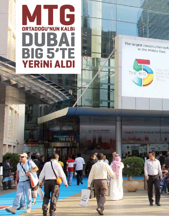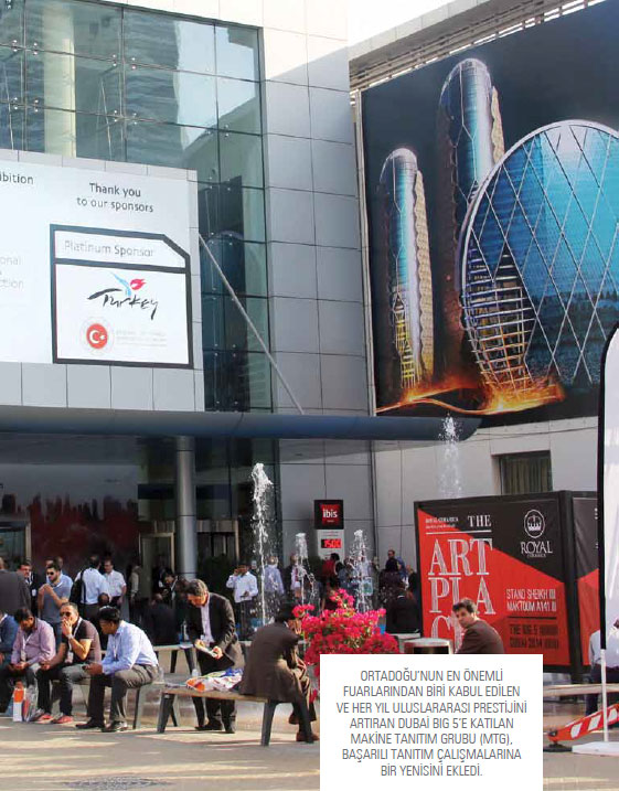 Birleşik Arap Emirlikleri’ne bağlı yedi emirlikten biri olan Dubai’de, 17-20 Kasım tarihleri arasında düzenlenen Uluslararası İnşaat ve Yapı Malzemeleri Fuarı BIG 5’e katılan MTG, standının bulunduğu holün girişinde ve ana fuayedeki “You Are In Good Hands - Emin Ellerdesiniz” temalı reklamlarıyla dikkatleri Türk makinelerinin üzerine çekti.
