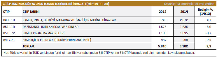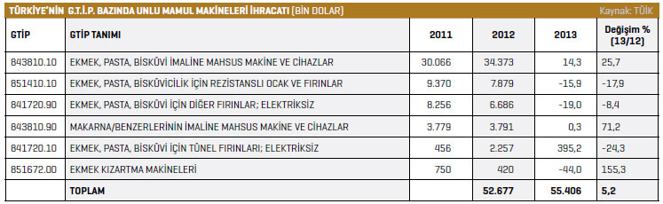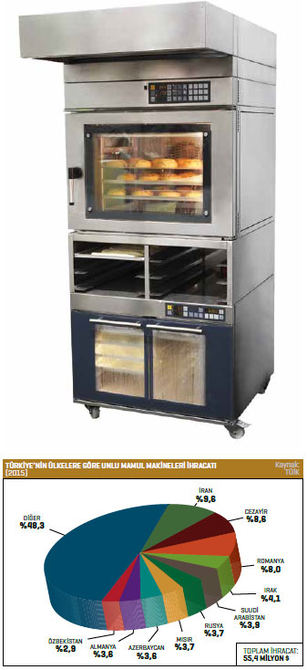 TÜİK verilerine göre dünyanın değişik noktalarına unlu mamul yapımında kullanılan makineler ihraç eden Türkiye’nin 2014 yılında 52,7 milyon dolar olan ihracatı, 2015 yılında 55,4 milyon dolar seviyesinde gerçekleşti. Söz konusu artışla sektör, 2015 yılında ihracat rakamlarında yüzde 5,2’lik bir yükseliş yaşamış oldu.