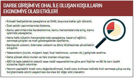 Her şeye rağmen kredi yatırım yapılabilir kredi notumuz düşürülebilir Dolayısıyla, sağlam makro ekonomik temellerimize rağmen, ekonomik açıdan bizi sıkıntıya sokacak olan “yatırım yapılabilir kredi notumuzun” düşürülmesi olacaktır. Moody’s ve Fitch, Türkiye’ye yatırım yapılabilir kredi notu verirken ekonomik göstergelerin yanı sıra siyasi istikrarı ve artan öngörülebilirliği de pozitif olarak değerlendiriyor. Son yaşanan gelişmeler ve OHAL ilanı, kredi derecelendirme şirketleri için siyasi değerlendirmelerinde ister istemez negatif etki yapacaktır. Bu nedenle, kredi notumuzun düşürülme olasılığının olduğunu düşünüyorum.