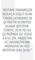 Sağlam makro ekonomik temellerimiz ekonomide hedeflenen normalleşmeyi destekleyecek Darbe girişimi ve ilan edilen OHAL kararının ardından ekonomide normalleşme hedefleniyor. Bu normalleşmeye en büyük katkıyı halen sağlam olan makro ekonomik temeller destekleyecek. Türkiye’nin büyüme dinamikleri oldukça kuvvetli: Ekonomimiz 26 çeyrektir kesintisiz büyüyor. Türkiye ekonomisi yüzde 4,8 ile 2016 yılı ilk çeyreğinde Çin, Hindistan ve Endonezya’nın ardından en hızlı büyüyen gelişen ülke oldu. Türk finansal sistemi, darbe girişimi sonrası ilk çalışma gününde açıldı ve etkin şekilde hiç bir sorun olmadan çalıştı. Yine, Merkez Bankası’nın darbe girişimi sonrası bankalar için oluşturduğu ilave olanakları hiçbir banka kullanmadı, kullanmaya ihtiyaç duymadı. Bankacılık sektöründe sermaye yeterliliği yüzde 13,5 ile dünyanın en yüksek oranlarından birine sahip. Geri dönmeyen kredilerin oranı yüzde 3,29 ile yönetilebilir seviyede izleniyor. 2016 yılında bütçe açığının milli gelire oranı yüzde 1,3 olacak ve bu oran çok sayıda gelişmiş ve gelişen ülkeden iyi bir açık verisi olarak dikkat çekiyor. Kamu borçlarının milli gelire oranı ise yüzde 36 ile dünyanın en düşük oranlarından biri...