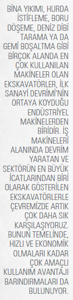 İş ve inşaat makineleri denildiğinde ilk akla gelen makinelerden biri kuşkusuz ekskavatörlerdir. Çoğunlukla toprak kazıp yükleseler de ekskavatörleri bina yıkımında, hurda istiflemede, boru döşemede, deniz dibi taramada ya da gemi boşaltma gibi birçok alanda çalışırken görmek mümkün. Tarihi neredeyse Sanayi Devrimi’ne kadar uzanan bu makinelerin bugünkü haline gelmesi ise hiç de kolay olmadı.