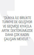Öncelikle kamuoyundaki genel algı yıkılmalı, üniversitelerde makine sektöründe çalışacak donanıma sahip birçok öğrenci yetiştiği halde işe alımlarda cinsiyet ayrımı ön plana çıkıyor. Fakat dünya ile birlikte Türkiye de gelişiyor ve geçmişe kıyasla artık sektörümüzde daha çok kadın çalışan mevcut. Ancak bu durumu yurt dışıyla kıyasladığımızda daha alınacak çok yol olduğunu da görüyorum. Kadınlar günümüzde her alanda başarı ve özveriyle çalışabilir, bunun için ön koşul sadece kendilerine güvenmeleri ve azimli olmalarıdır. Bugünün dünyasında artık sadece “erkek işi” olarak tanımlanabilecek bir sektör bulunmuyor.