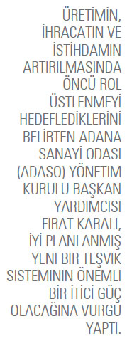 ADASO’da sekiz yıldır çalışmalarını sürdüren Fırat Karalı, 2012 yılından bu yana Yönetim Kurulu Başkan Yardımcılığı görevini üstleniyor. Adana Üniversite-Sanayi Ortak Araştırma Merkezinin de (Adana-ÜSAM) Yönetim Kurulu Başkanı olan Karalı; Adana sanayisinin güçlü biçimde daha ileri seviyelere taşınması, hak ettiği yere kavuşabilmesi için yönetim kurulu olarak önemli adımlar attıklarını belirtiyor. Sanayi odalarının yönetim kademelerinde etkin rol alan makine sektöründen gelen isimlerin görüşlerine yer verdiğimiz sayfalarımızın bu ay ki konuğu olan Fırat Karalı, bölge sanayisinin yapısı ADASO’nun çalışmaları ve hedefleriyle ilgili bilgi verdi.