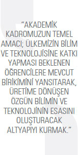terminolojiyi bilmeleri nedeniyle sanayiyle iletişimi kolaylaştırmasıdır. Ulusal ve uluslararası düzeyde gerçekleştirdiği bilimsel çalışmalarla bilimsel yetkinliğini kanıtlamış ve endüstriyel tecrübesi olan akademik kadromuzun temel amacı; ülkemizin bilim ve teknolojisine katkı yapması beklenen öğrencilere mevcut birikimini yansıtarak, üretime dönüşen özgün bilimin ve teknolojinin esasını oluşturacak altyapıyı kurmaktır.