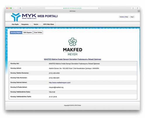 Makine İmalat Sanayii Dernekleri Federasyonu (MAKFED), Ankara Kalkınma Ajansı desteğiyle sınav ve belgelendirme merkezi kurulmasına yönelik bir yıldır yürüttüğü proje sonunda, 31 Ocak 2018 itibarıyla Mesleki Yeterlilik Kurumu (MYK) Yetkilendirilmiş Belgelendirme Kuruluşu unvanını aldı.