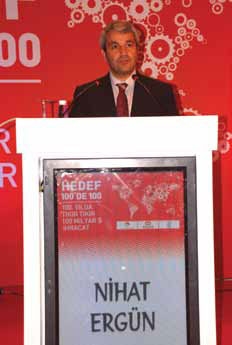Makine sanayi sektörünün tıkır tıkır çalıştığını ifade eden Nihat Ergün; “2023 yılında 100 milyar dolar ihracat yapacağız. Bunu başarmak için sektörü Ar-Ge, teknoloji ve markalaşma konusunda daha fazla geliştirmeli, işletme ölçeklerini optimum seviyeye taşımalıyız’’ dedi.