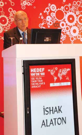 ALARKO Holding Yönetim Kurulu Başkanı İshak Alaton da Kanal İstanbul Projesi’nin konuşulduğunu ve olumlu tepkiler aldığını, bir gazetenin sürmanşetinin de ‘’herkes hayal satıyor’’ olduğunu anımsatarak, hayal etmeden yaşamanın çok zor olduğunu kaydetti. Kendisinin çok hayal kurduğunu, 2050 yılında insanların yaşam tarzı nasıl olacak diye merak ettiğini anlatan Alaton, şöyle devam etti: “Çok heyecan verici bir resim buluyorum karşımda. Hayal kurma takıntımda sevgili ortağım Üzeyir Garih’in sesi hep kulağımdadır. Benim uçuk fikirlerimi sabırla dinledikten sonra derdi ki ‘Hayal kurmak iyidir, yeni çareler üretirsin, sen istediğin kadar bulutlarda dolaş, yeter ki ayakların yerden kesilmesin, gerçekçi ol’ derdi. Ben burada biraz Üzeyir Garih gibi konuşacağım. Dünya hızla gelişiyor, değişiyor ve değişimin ivmesi de devamlı yükseliyor. Bu değişimi anlamakta bazılarımız zorlanıyoruz. Birçoğumuz değişimi anlamayı da reddediyor ve sıkıntılara yürüyor. Hâlbuki bugün elimizde gerekli veriler ve ayrıca da önemli bir alet var. O da bilgisayar. Mesleğimizle ilgili gelişimleri takip etmek bugün çok kolay. Sadece Türkiye’deki değişimi anlamak da yeterli değil. Dünyada neler değişiyor, hangi yeni metotlar uygulanıyor? Dünyayı anlamak şart, yoksa bugün ayakta kalamazsınız. Türkiye dünya ekonomisiyle entegre oldu. En son model makineleri Avrupa ya da Amerika’dan gümrüksüz getirebiliyoruz. Dünyanın en ileri ülkelerinde en iyileriyle rekabet edebilmek için belirli bir yatırımı göze almak gerekir. Yoksa daha yolun başındayken yatırımdan vazgeçmeniz gerekir. Sadece Türkiye’de mal satma rüyası dünde kaldı. Bugün dünyayla rekabet edemeyen sanayici er ya da geç batacaktır. Vazgeçilmez kural dünyayla rekabet edebilmektir. Kalite ve fiyatta dünyanın en ileri gelenlerinin arasında bir yer alabilmek için yola çıkılmalıdır.” Bürokrasinin zihinsel devrim yaşamasının gerekliliğine değinen Alaton; “Ancak bürokrasinin desteği ile bu çıtayı aşabiliriz. 1950 ile 2000 yılları arasında Ankara bürokrasisinin özel sektörün gelişmesine darbe vurduğunu, Almanya zenginleşirken Türkiye’nin zenginleşmesinin engellendiğini savunan Alaton; “Ben en çok buna üzülüyorum. Neden Türkiye zenginleşemedi, neden hala aç yatan insanlarımız var? Zihinsel olarak darbelere son verelim, demokrasimize sahip çıkalım. Sizlerin bürokrat karşısında boynunuz bükük kalmasın. İnsan odaklı hizmet etme heyecanı duyan yeni bir bürokrasi zihniyeti, bürokratla vatandaş ilişkisini geliştirelim. Zaten görevi topluma hizmettir, biz de bunu bekliyoruz” dedi. Alaton; “Türkiye’nin sağlıkla ilgili ithalatı 21 milyar dolar. Bugün 18 misli büyüyecek bir biyoteknolojiyi size müjdelemek istiyorum. Hayal kurmaya devam edelim ama başımız bulutlarda iken ayaklarımız yere sağlam bassın’’ diye konuştu.