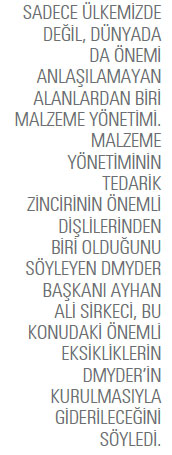 Üretim için gerekli malzemelerin tedarik zincirini aksatmayacak şekilde sürekli olarak temin edilmesini sağlamanın yolunun malzeme yönetiminden geçtiğini belirten Sirkeci, bu konuda ülkemizde birkaç özel firma dışında profesyonel anlamda çalışma yapan kurum ya da kuruluş olmadığını aktarıyor. Sirkeci, DMYDER’in de bu eksikliği kapatmayı, firmalara ve sektörlere tedarik zinciri içinde malzeme yönetiminin önemini göstermeyi misyon olarak benimsediğini de ifade ediyor. DYMDER’in gerçekleştireceği eğitim, etkinlik ve toplantılar ile sektörü bilinçlendirmeyi amaçladığını söyleyen Sirkeci, malzeme yönetiminin firmalar için lüks değil zorunluluk olduğunu da şöyle aktarıyor: “Bir dökme malzemeyi bir yerde depolamak zorundasınız ve bu da genelde silo ya da depo dediğimiz yapıda oluyor. Malzeme depolamak da problem yok ama çekmede problem yaşıyorsunuz. Çünkü bir malzemeyi çekerken akar özellikte olması gerekir. Oradan bir işleme gönderirsiniz bu madencilik işlevi de olabilir daha sonra ürünün paketlenmesi de olabilir. Bunun taşınma ayağı da var tabi. Bant taşımada da problemler olabilir. Bu konuda yapılmış silo tasarımları Türkiye’de bilimsel olarak tasarlanmış değil. Bilimsel verilerle tasarlanmayan silolarda malzeme akmaz, erişim sağlayamazsınız bu hem zaman hem de verimlilik kaybına yol açar. Malzeme yönetimi de üretim zincirinin her halkası gibi bilimsel bir temele oturmak zorunda.”