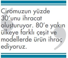 merkezini 2013 yılı sonunda Kartal’daki yeni adresimize taşıyacağız. Türkiye yakma sistemleri/brülör pazarının yüzde 45’ine hakim, lider bir marka olarak Türkiye pazarını tamamıyla kapsayan bir satış ve satış sonrası hizmet organizasyonuna sahibiz. Avrupa, Uzakdoğu, Güney Amerika öncelikli olmak üzere, ihracat faaliyetlerimizi kendi organizasyonumuz içindeki beş kişilik ihracat ekibimiz ile yürütüyor ve dünyanın 80 ülkesine ürünlerimizi ihraç ediyoruz. Firmamızın en önemli niteliklerinden biri, yüksek kalitede üretim yapma kabiliyeti ve kendi bünyesinde faaliyet gösteren Ar-Ge birimidir.