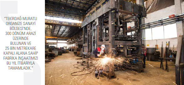 Dünya pazarlarına daha güçlü bir şekilde girmek için eksikliğini yıllar önce görmemize rağmen yatırımına ancak altı yıl önce başladığımız Tekirdağ Muratlı Organize Sanayi Bölgesi’nde, 300 dönüm arazi üzerinde bulunan ve 25 bin metrekare kapalı alana sahip fabrika inşaatımızı bu yıl itibarıyla tamamladık. Makine parkı alımına ise halen devam ediyoruz. Yeni fabrikamızda üretim kapasitemiz artacağı için imalatımız içinde ihracatın oranını da yüzde 80 düzeyine yükselteceğiz. Firmamız halen beton şekillendirme makinelerimizi imal ettiğimiz Hadımköy fabrikasında çalışmalarını sürdürüyor. Bunun yanı sıra 2010 yılında bünyemize kattığımız ahşap ve plastik palet imalatı yapan Beykoz Riva’daki fabrikamız ve 2018’de faaliyete geçecek olan Muratlı fabrikamızla ülkemize daha uzun yıllar hizmet vermeyi amaçlıyoruz.