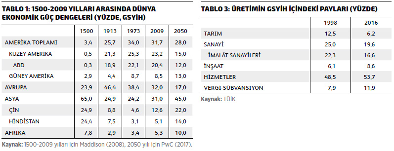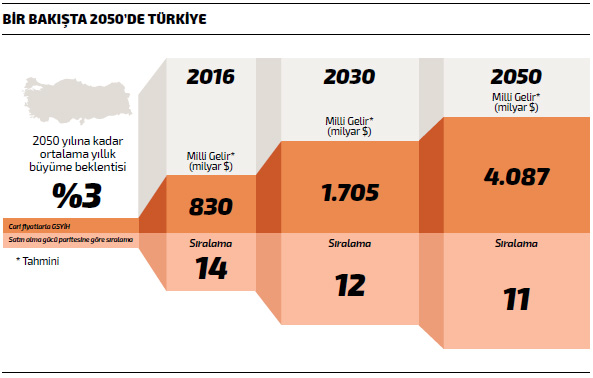 Price Waterhouse Coopers (PwC) iktisatçılarının 2017 yılı Şubat ayında yayımladığı “2050’de Dünya-The Long View: How Will the Global Economic Order Change by 2050?” başlıklı çalışma, 2050 yılında küresel sistemde sıralamalar ve büyüklüklere odaklanırken, ciddi değişimlerin beklenmesi gerektiğinin altını çiziyordu. Rapora göre bu değişimler, kıtalararası ağırlığı değiştireceği gibi ülkelerin ekonomik güç sıralamasını da değiştirebilir.