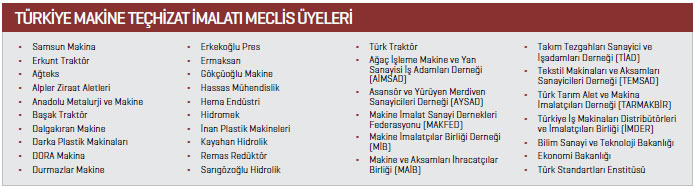 Başkanı Melek Bar’da sektörler arası işbirliğinin sağlanması konusunda bir sunum yaptı. İstişari nitelikte olmak üzere; sektördeki gelişmeleri teşvik etmek, sorunları incelemek ve önlemleri tespit etmek amacıyla makine imalatçılarını, sektörel birlik ve dernekleri, ilgili kamu kurum ve kuruluşlarını biraraya getiren ve TOBB çatısı altında faaliyetini sürdüren Türkiye Makine ve Teçhizat İmalatı Meclisi’nin, yeni kadrosu 8 Nisan’da göreve başlamıştı. Başkan ve Başkan Yardımcısının seçildiği meclis toplantısında, Türk makine sektörünün ülke kalkınmasında taşıdığı sorumluluğun altı çizilerek, paydaşların giderek artan etkinliklerinin uyum ve dayanışma içinde koordine edilebilmesinin sektörün üstlendiği misyona yaraşır efektif neticeler ortaya çıkaracağı üzerinde durulmuştu.