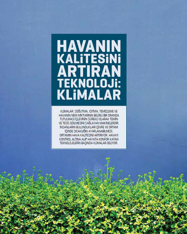 Iklimlendirme; konfor, hijyen ve özel proses ihtiyaçlarının karşılanması için çevre şartlarının ısıl prosesler ile sistemler kullanılarak kontrol altına alınması ve insanlığın hizmetine sunulması bilimi olarak tanımlanıyor. Bu tanım dikkate alındığında, iklimlendirme sektörünün kapsamı; ısıtma, soğutma, havalandırma, hava şartlandırma (klima) sistem ve ekipmanlarını içeriyor. Hava şartlandırma (klima) sistem ve ekipmanları, iklimlendirme sektörünün en önemli unsurlarından biri kabul ediliyor. Aslında klima; soğutma, ısıtma, temizleme, sirkülasyon yaptırma ve havanın nem miktarının belirli bir oranda tutulması işlevinin sürekli olarak temin ve tesis edilmesini sağlayan bir makinedir.