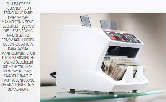 Otomatik para sayma makinelerindeki üçüncü nesil atılım ise 1981’de bilgisayar tabanlı para sayma makinelerinin ortaya çıkmasıyla gerçekleşti. Bu makineler saatte 72 bin adede kadar banknot sayabiliyor, paraları değerine göre ayırabiliyor ve hasarlı/sahte olanları tespit edebiliyordu. Günümüzde de kullanılan son teknolojiye sahip para sayma makinelerinin temel özellikleri, bu üçüncü nesil para sayma makineleriyle ortaya konulurken, bugün kullanılan para sayma makinelerinin tercih edilirliklerindeki en önemli özellikleri ise manyetik imza, ultraviyole imza, manyetik bant ve kâğıt yoğunluğunu da analiz edebiliyor olmalarıdır.