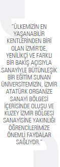 Okullarının, üçüncü kuşak üniversite kavramı uyarınca, “sanayide üniversite” prensibiyle İzmir Atatürk Organize Sanayi Bölgesi’ne bitişik olarak 2010 yılında kurulan bir devlet üniversitesi...