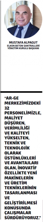 SEKTÖRÜNDE ULUSLARARASI ALANDA LİDER OLMA HEDEFİYLE ÇALIŞIRKEN, İNOVASYONU VE ÜRETİMDE EN İLERİ TEKNOLOJİLERİN KULLANIMINI AMAÇLAYARAK VE ULUSLARARASI REKABETİN GEREĞİ OLARAK, AR-GE ÇALIŞMALARINA DA BÜYÜK ÖNEM VERDİKLERİNİ SÖYLEYEN ELKON BETON SANTRALLERİ YÖNETİM KURULU BAŞKANI MUSTAFA ALPAGUT, “ENDÜSTRİ 4.0 UYGULAMALARI, YAPAY ZEKÂ VE ARTTIRILMIŞ GERÇEKLİK KONULARINI İÇEREN PROJELERİMİZİN YANI SIRA MALİYET DÜŞÜREN, VERİMLİLİĞİ VE KALİTEYİ YÜKSELTEN, TEKNİK VE TEKNOLOJİK OLARAK ÜSTÜNLÜKLERİ VE AVANTAJLARI OLAN, İNOVATİF ÖZELLİKTE YENİ MAKİNELER VE ÜRETİM TEKNİKLERİNİN TASARLANMASI VE GELİŞTİRİLMESİ KONUSUNDA ÇALIŞMALAR SÜRDÜRÜYORUZ” DİYOR.