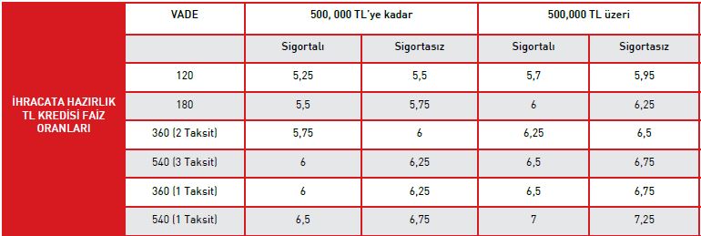 Mikro, küçük ve orta büyüklükteki işletmelere, ihracata hazırlık aşamasında,finansman ihtiyaçlarının karşılanması amacıyla ihracat taahhüdü karşılığında, TL veya döviz cinsinden doğrudan kullandırılan kredilerdir.Firma limiti, TL ve döviz kredilerinin toplamı azami 1 milyon dolardır.Program kapsamında, banka teminat mektubu, KGF kefaleti, Devlet İç ve Dış Borçlanma Senetleri asli teminat alınıyor.