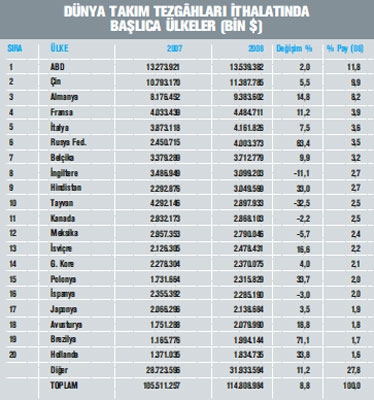 Dünyanın en büyük takım tezgahları ithalatçıları olan ABD,