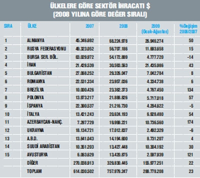 dolara yükseltti. 2008 yılı toplam ihracatında; Almanya