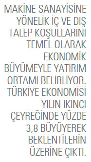 uanlık ikinci çeyrek büyümesine 2,33 puanlık katkı sağladı. Makine sanayi açısından ikinci çeyrekte özel sektör yatırımlarının büyümesi önemlidir.