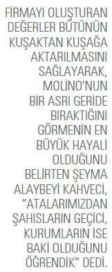 Aslında bir zorunluluktu. Çünkü babam şirkette, aileden birileri olması gerektiğini, bir an evvel kendimi yetiştirip yardım etmemi her seferinde dile getirirdi. Bana hep şirkette çalışacağımı, ona uygun meslek seçmem gerektiğini söylerdi. Bu nedenle lisans eğitiminde işletme bölümünden başka bir alternatif düşünmedim. Ancak şirketimizde görev alacağım belli olmasına rağmen üniversiteden mezun olduktan sonra beş yıl başka kurumlarda çalıştım. Bunun temel nedeni dedemin çalışma prensibiydi. Dedem Fransa’da eğitim alırken öğrendiği bir şeyin çok işe yaradığını görmüş, kendi torunlarına da bunları uygulaması gerektiğini düşünmüş. Öğrendiği şey şuydu: Fransa’daki şirketler kendi çocuklarını önce kendi şirketlerinde değil de başka şirketlerde çalıştırarak emir almanın ne demek olduğunu, başka şirketlerin düsturlarının ne denli uygulanabilir olduğunu görmelerini istemeleriydi. Gerçekten de başka yerlerde çalışmak bana çok şey kattı. Gerek makine sektöründe gerekse firmamızda üretimin içinde olmamak mümkün değildir. Üretim Molino’yu Molino yapan ana unsurdur. Çünkü kalitemiz mütevazı olunamayacak düzeydedir. Her sabah işe geldiğimde üretim raporu alır, üretimin her aşamasını takip ederim. Üretimde olan biten idari bölümdeki işlerimin vizyonunu belirler. Bunun yanı sıra mühendislik ve mimarlık da öğrenmem kaçınılmaz oldu tabi. Malzeme bilgisinden tutun da hammadde püf noktaları, diyagram analizi, fabrikanın işleyişi ve nihai ürünün kalitesi konusunda bilgilerimi artırdım. Halen öğrenmem gereken çok şey var. Ama en büyük şansım dedem ve babam. Onlardan her gün yeni bir şey öğrenmeye gayret ediyorum.