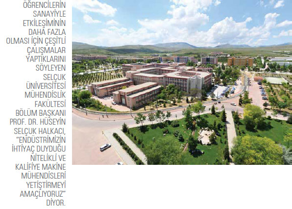 Selçuk Üniversitesi Makine Mühendisliği Bölümü’nün 1972 yılında Konya Devlet Mühendislik Akademisi bünyesinde açıldığını, 1982 yılından itibaren de Selçuk Üniversitesi’ne bağlanarak eğitim ve öğretime devam ettiğini söyleyen Selçuk Üniversitesi Mühendislik Fakültesi Bölüm Başkanı Prof. Dr. Hüseyin Selçuk Halkacı, “Verdiğimiz eğitimle öğrencilerimizi; çağın gerektirdiği bilgi ve donanıma sahip, analitik düşünen, yenilikçi, gelişime açık, sorgulayıcı, eleştirel bakış açısına sahip, etik değerlere bağlı, toplum ihtiyaçlarını önde tutan, çalıştığı kuruma ve ülkesine katma değer sağlayan bireyler olarak yetiştirmeyi hedefliyoruz” diyor.