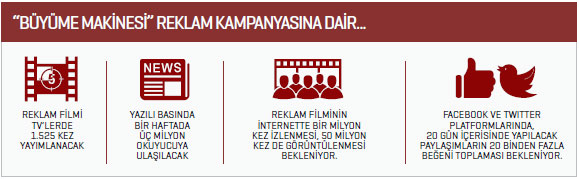 2009’da hayata geçirilen iki aşamalı “Tıkır Tıkır” kampanyasıyla, özellikle Türk makine sanayisinin yurt dışındaki bilinirliğine önemli katkılar koyan Türkiye’nin Makinecileri, bu kez sektörün yurt içi tanıtımına odaklanacak “Büyüme Makinesi” iletişim kampanyasını hayata geçirdi.